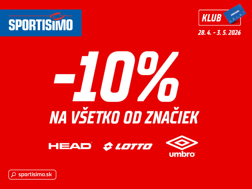 V predajni Sportisimo v našom obchodnom centre teraz kúpite produkty značiek Umbro, Lotto a HEAD so zľavou 10 %.